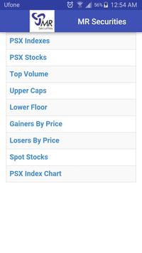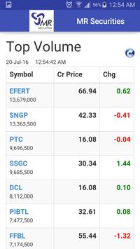 MR Securities Android App offers the clients to stay up to date with the stock market on Pakistan. The app shows the same data as the website does and users don't need the login as this is the original real time information of the stock market like Index, Rates, Traded Volume, Top Volume, Upper Caps, Lower Floor, Gainers By Price, Losers By Price, Spot Stocks and Index Chart.
