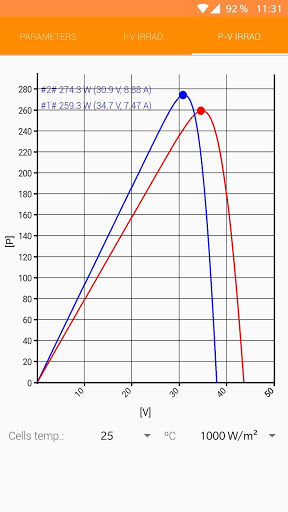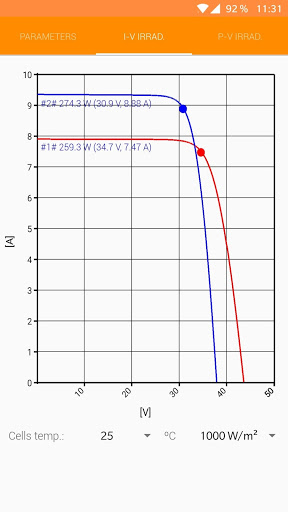 The determination of the parameters of the module allows to simulate the behavior of the photovoltaic panel under different conditions.