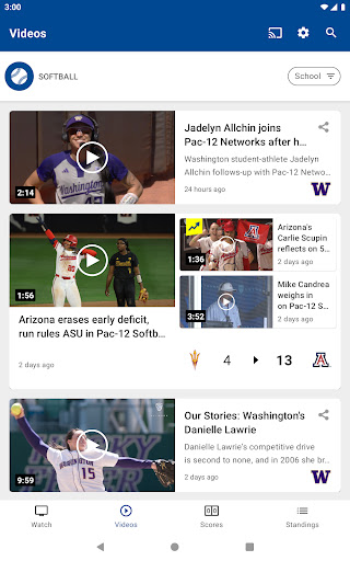 • Live games, studio shows, and TV shows on the Pac-12 Networks streaming channel.
