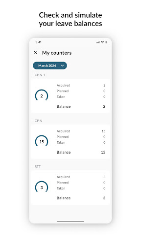 Wherever you are, and at any time of the day, the mobile application allows you to know the status of your leave balances on today's date and to estimate your balances in the future.