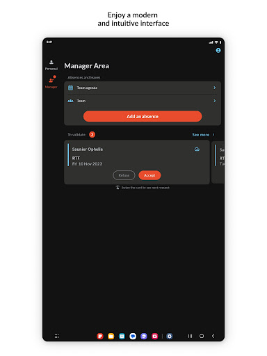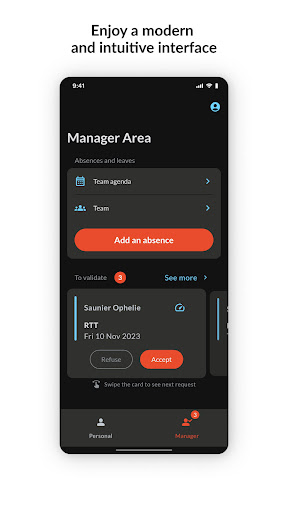Are you a Manager within your company? Follow your team schedules, add an absence for a member, and validate requests directly from your mobile.