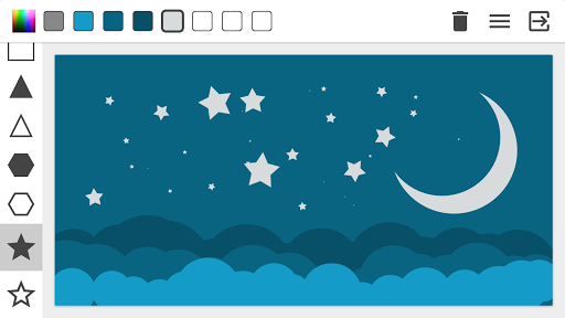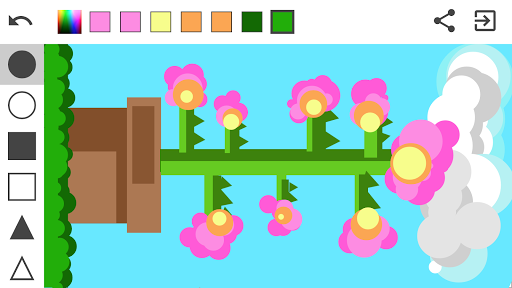 PaintShapes is different from the other painting apps because you are not allowed to draw free lines. Everything you paint must be done through geometric shapes and how they interact with each other. Have fun and get challenged to paint interesting stuff with a limited set of tools.