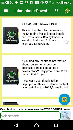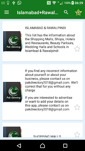 Pak Directory has information about the Shopping Malls, Shops, Hotels and Restaurants, Beauty Parlours, Wedding Halls and Schools. Once downloaded you don't need internet to use the app that means all the data will be accessible even without the internet.