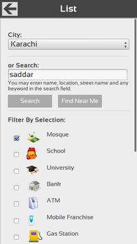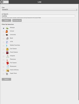 Its a full fledged offline pakistan map application, it allows you to search through pakistan point of interest (POI) places. It has a long list of cities based on population and good number of existing POI. You can search for the place by their name, address, street, town, category, etc. or you can search for near by POI based on your gps location.