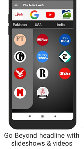 You can access different news websites through our app۔ you can review different news۔ you can watch live news. With this app you can use Google۔ And you can also review sports through Geo Super