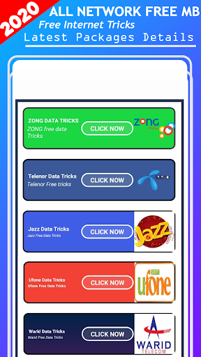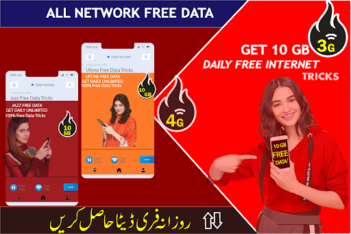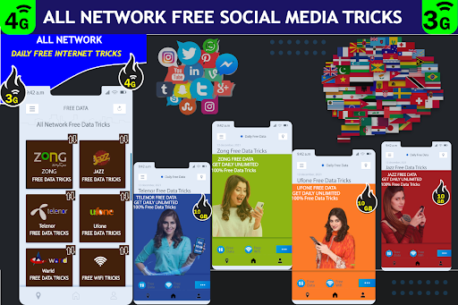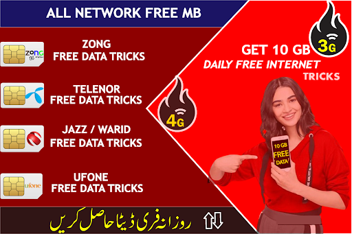 Daily Free data internet 3g 4g Free MB Tricks application and try all free internet tricks which explain step by step for all network.you'll get 1gb to 50GB 3G/4G free data tricks freely and share with your friend's and family members. Application contains much more amazing features for our valuable users like All network packages, internet packages,sms package,social media internet package, free 3g and 4g mobile data packages. Application also have an call Packages and sms packages for Jazz and jazz/mobilink 3g,4g free data internet packages and tricks.