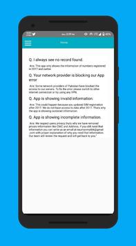 The data used in this app is pretty much limited and outdated. Developers of this app respect privacy of people. This app does not show data of the users who have verified their SIM using bio metric verification. The developers of the app are always willing and ready to take down this app if the government or concerned authorities of Pakistan want to remove this app.The data shown in this Number Tracker App is provided free of charge for informational purposes only, with no guarantee of whatsoever for accuracy, validity, availability, or fitness for any purpose. Use at your own risk.