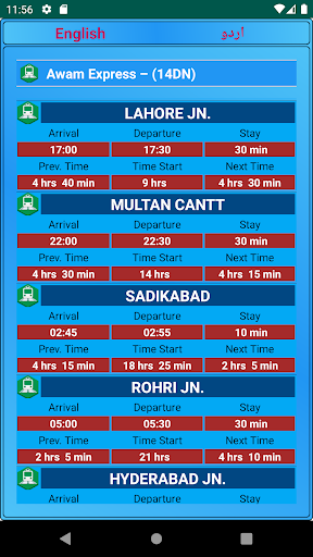 2. Show Time Table of Stations.