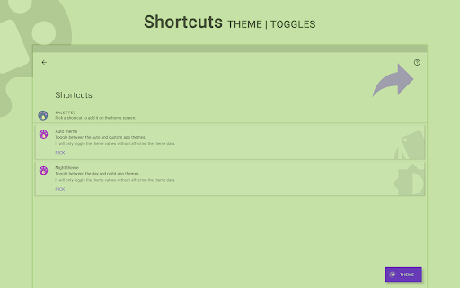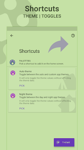 • Change the theme of all the supported apps at once via shortcuts and notification tiles.