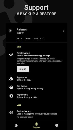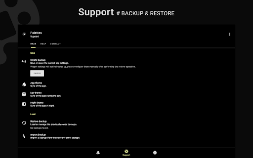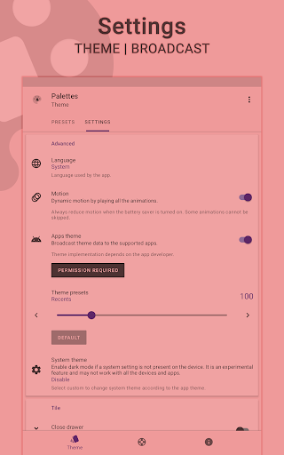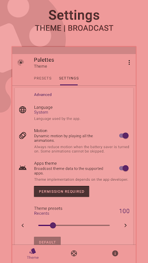 Palettes is a universal manager for apps supporting the dynamic theme on Android. It provides some default configurations which can be extended to create custom ones. Let's give it a try to explore its other features.