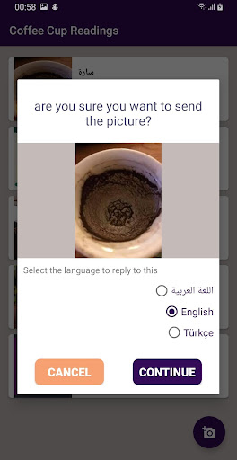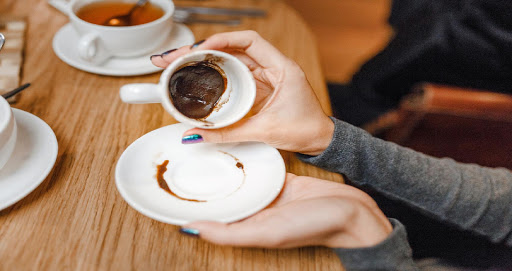 Reading the cup After drinking coffee, trying to decipher the symbols, I smiled at the bottom of a cup and looked at the hidden future of which no other than God is trying to solve a social and psychological contract, and part of the legendary Arab heritage is still firmly rooted in minds.