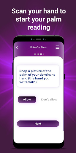 - Ask a question, scan your palm,