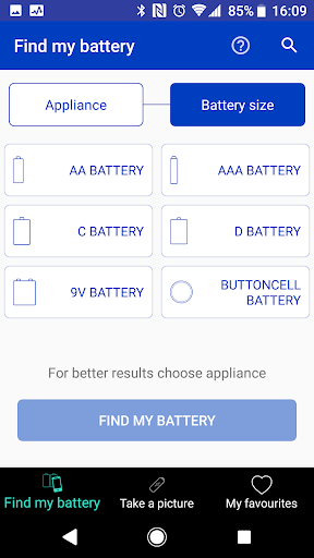 The app's battery finder functionality will provide you with all the information needed to choose the best battery for your appliance. You can save this battery for specific appliances around your home.