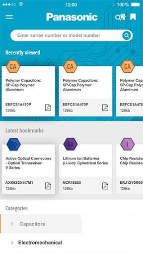 This Datasheet Shortcut App provides immediate and easy access to what you as a design engineer need most. Panasonic Datasheets in pdf format that can be viewed, bookmarked for reference and easily shared. The App Home Page presents Recently Viewed Datasheets and Latest Bookmarks. Only the Datasheets you need will be stored on your device. The App lets you easily delete Datasheets you don’t need.