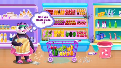 a whole family of them. It's seems like the family business is actually having and managing a supermarket which is pretty cool when you think about it. There are so many tasks you should accomplish that is the reason you need to start working right away. As a chef manager you've got the biggest responsibilities on you and that could be fine if you are an organised person. In this animal game you are going through 4 phases in order to finish the game, but to be able to move from one to another you must complete entirely each one of them. Begin with the cleaning part and make sure the place looks like a proper store where all the animal world could buy from. Wash the floors, remove the spider web and throw away the trash. The purchase step is just when you make the inventory and see what kinds of products are missing or rotten, so you can replace them to have a full grocery. You are also assigned to help at the billing process where you are just recording the products in your supermarket database and charge the clients for the stuff they buy. Don't forget the clothing phase because a nice dressed up manager might impress the customers and also could help you in the sales. Add nice items and dress the panda in any style you like, also try to enjoy every step of this game while you become a good store manager.