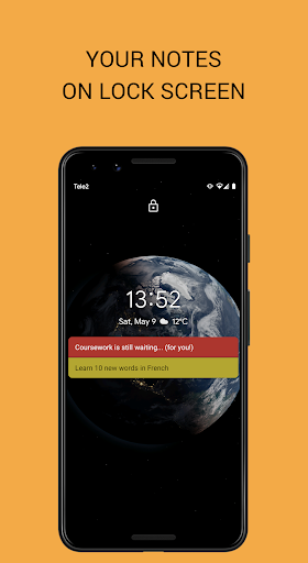 You study or work on a project, plan an official event or meeting with friends - Panorama will not let you to forget about it. In just a couple of clicks you will be able to bring important notes, reminders directly to the status bar and to the lock screen. Everything you need to remember will always be before your eyes, in the status bar (notification panel).