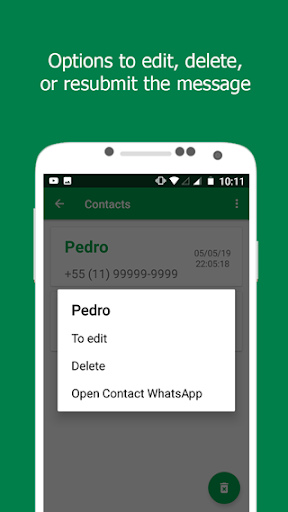 You can choose to save the numbers in the application itself. With this option enabled it will show a list with the numbers entered, in it you have the option to edit, send message again, delete and sort the list.
