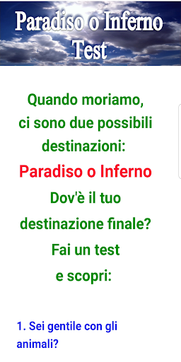 Paradiso o Inferno? Test Questa app aiuta a determinare dove trascorrerai l'eternità.