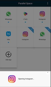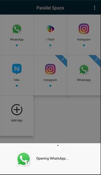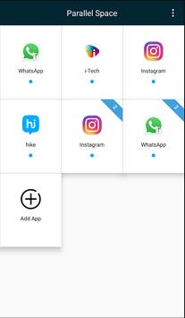 - Parallel space, dual space app will help to manage your private account and public account of social media app like facebook, whatsapp, twitter, hike, Instagram, etc.