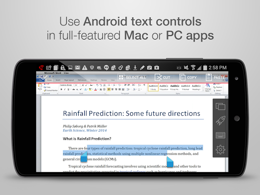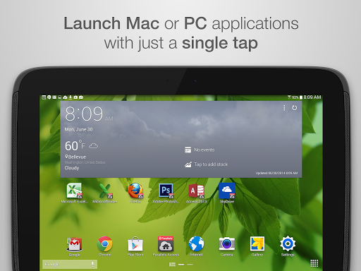 Start applications or switch between them with just a tap. Put your favorite desktop application right on the home screen of your Android device. Plus a complete desktop keyboard to help you take full advantage those desktop apps.