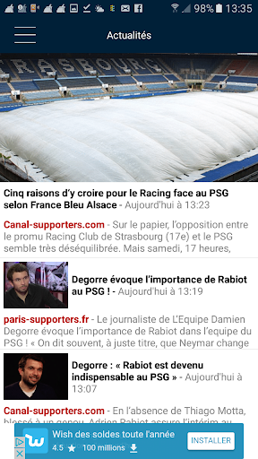 Avec l'application PARIS ACTUALITÉS en DIRECT restez connecté 24h/24 à l'actualité et aux résultats du Paris Saint Germain.