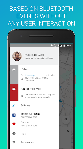 Use the Bluetooth connection of your car to detect effectively when you park. Just walk away from your car and the location will be registered. Seamlessly. Then just check the app and follow the walking directions to get back to it.