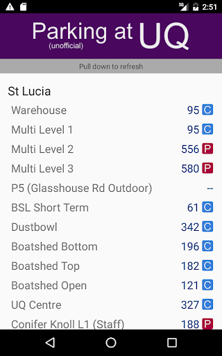 See real-time parking availability at the University of Queensland at all enabled parking locations on the St Lucia campus. This is an unofficial app. Never use your phone while driving, even when stopped at lights. Plan your trip before you leave.