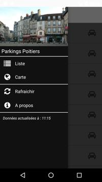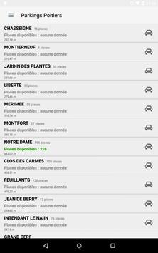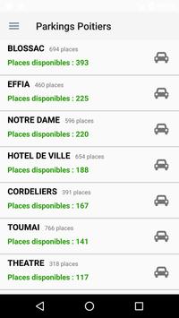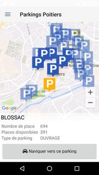 L'application Parkings Poitiers vous donne la localisation de 25 places et parkings de Poitiers et, pour certains, le nombre de places libres en temps réel.