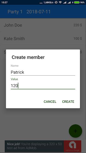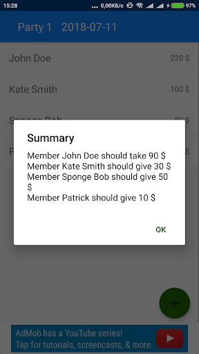 Divides amount of cash between members of party.