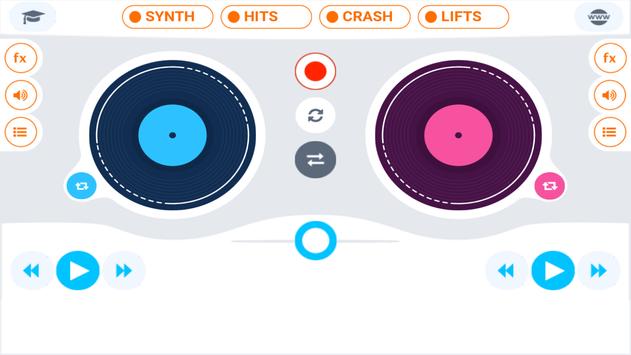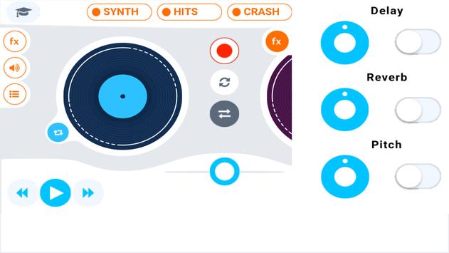 HOW TO USE: Tap on the turntable to choose lead part of your track. Upload your favorite samples from iTunes if you don't like default ones. Then add one shots or sounds fx to your music track. Use additional synthesizer keyboard to add some creativity in music creation. Control pitch and panorama of each sound for perfect sounding. Put on professional filters. In the end, tap synchronization button for perfect sounding and save this mix on your device.