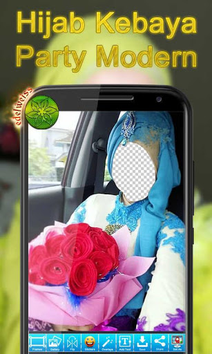 Applications Hijab Kebaya Party Modern this means you can use to selfie. This application can also be called by the application hijab photo montage, where you just put your face on a costume photo hijab in the right position. Looking as if it has a large collection of clothes that can show off to your friends through social networks.