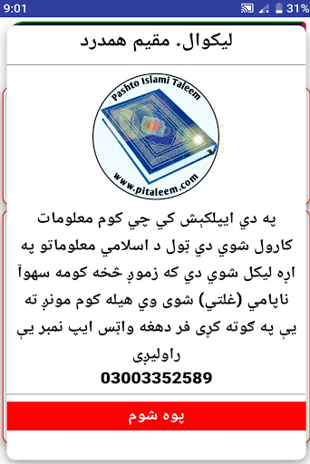 If you want to learning prayer install this app. Welcome to pashto islame taleem, watch basic information by this application. Do you want to prayer and more Islamic information.this app all Pashto peaple.