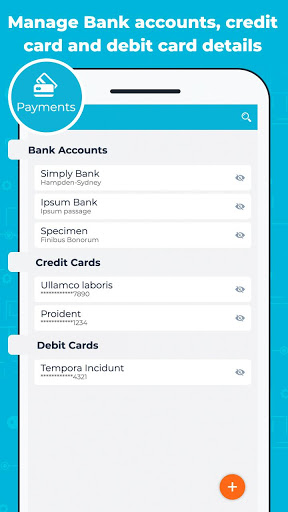 - Save Payments, Credit Card and Debit card in Secure Password Manager