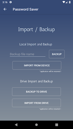 - Easy Import and Backup with local storage and Google Drive. (GET PRO)