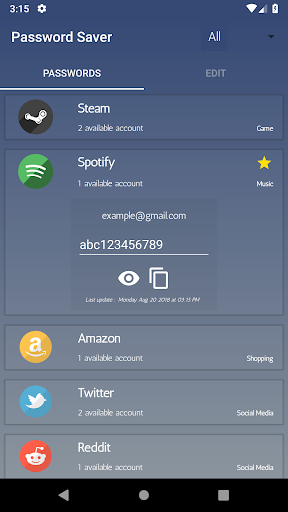 Securely stores your passwords, web accounts, credit card information and other custom data.