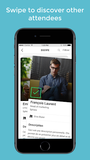 Thanks to the Patapouf Gang app: - Chat with attendees using our personalized networking - Get the last updates of the event online.
