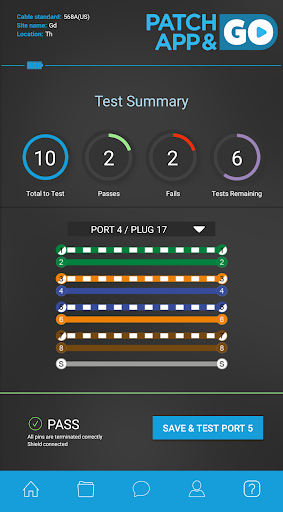 Test and verify the correct termination of any 4 Pair network cable. The App will instantly display a visual pass or fail.