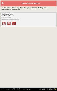 11. Bills/Collection - View Daily Collection of Amount Paid. Balance Due Report - Allows you in just one click to text, call or email your patients who have balance due. Pre-fills the text message and email with the default friendly message that you can change as you please. We also pre-fill the number to call and to text to the patient. You can change the number or email if you need to right on the same screen.