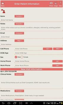 6. Add multiple photos, images, voice (for medical transcripts ), files and video attachments to Patient Visits to capture various needs such pictures before and after treatment. You can also scan or take a picture of lab reports, x-rays etc. Use Update Visit Menu to view previous attachments.