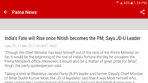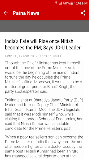 Best app to get Bihar and Patna news on your mobile phone in English. Get the latest and breaking news of Bihar in from your favorite newspapers (patnadaily) websites. We have live RSS feeds coming from their official sites. Explore Bihar's (Patna, Muzaffarpur, Bhagalpur, Bhojpur and major cities of Bihar) happening topics like politics, sports, elections and festivals.