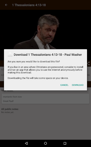 If you live in an area where Christians are persecuted, consider to install and run an app that allows you to use the Internet anonymously before installing the app and downloading audio files from Paul Washer Sermons.