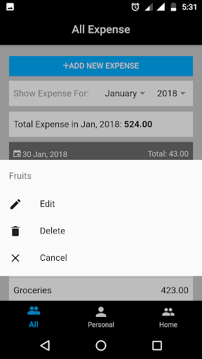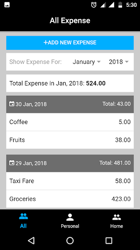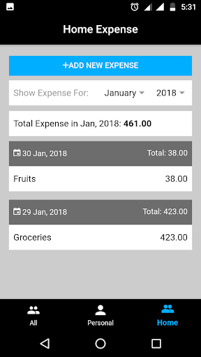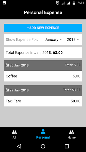 All you need to do is add your each expense record when you paying money for something. You can track your over all expense, personal expense and home expense separately just by one click. Easily manage expense report of any month for previous 80 years by one click.