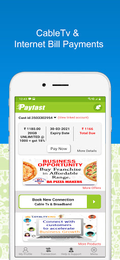 Payfast India - Mobile app empowers you to make Online Cable Tv Recharge, Broadband Bill Payment and Online Connection Booking for CableTV and Broadband