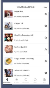So how does it work? Well, simply download the app, sign up, and start collecting points! Make sure you location is enabled, as this makes it super fast and easy to find the shop/restaurant where you are. Tick the 'star' icon on each card that you want to save to your 'favourites' for fast access. Points are added by the cashier, by allowing them to enter a unique code into your app.