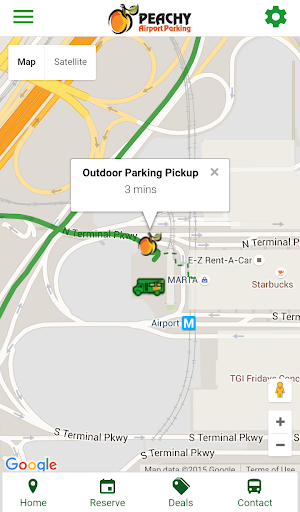 Peachy Airport Parking proudly offers Atlanta’s first and only GPS-enabled shuttle bus tracking app. The Peachy App lets patrons of Peachy Airport Parking view and connect with our shuttle bus system in real time. Save your space number, find your pickup station at the Atlanta ATL Airport, determine the next shuttle arrival and send the dispatcher a pickup request in just a few taps.