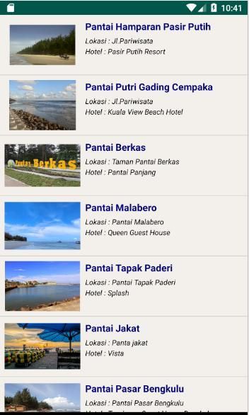 This application was made so that people can find out information on tourist attractions in the city of Bengkulu. Where on this application the tourist object has been divided into several parts, namely Nature Tourism Objects, Cultural Tourism Objects, Historical Tourism Objects, Educational Tourism Objects, Religious Tourism Objects, Marine Tourism Objects.
