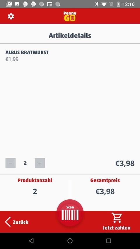 With Penny GO, you can scan all your items while shopping, saving you time. At the end of the shopping you only have to pay without putting the goods on the cash register. In addition to the time savings, you will always have an overview of all recorded items with price and the total price of your purchase.
