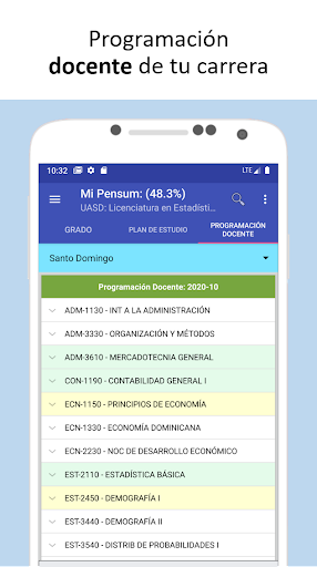 It allows you to select a study plan (program), specify if the courses are being studied or they have already been completed, the record of grades and schedules; which allows to display an average progress of the selected study plan. In addition you can see the progress achieved in other curricula in case of changing or choose another.