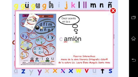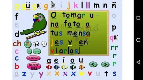 Tendrás que buscar alrededor de la pantalla las letras tocándolas simplemente en el orden como quieras que vayan apareciendo. Ya escritas en la pizarra verde, si crees que la palabra lleva acento o mayúscula, deberás volver a tocar sobre la letra elegida, notando el cambio enseguida.