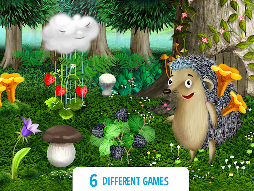 All animals live on a separate floors of the forest tree and offers six different mini toddler games. While playing different levels, children will get to know many fun facts about nature, forest ecosystem and inhabitants, such as caterpillar, hedgehog, mole, owl, squirrel and others: what they look like, what they eat and how they get their food, when they sleep, where exactly they live - in the branches, on the leaves or under the ground, and much more.